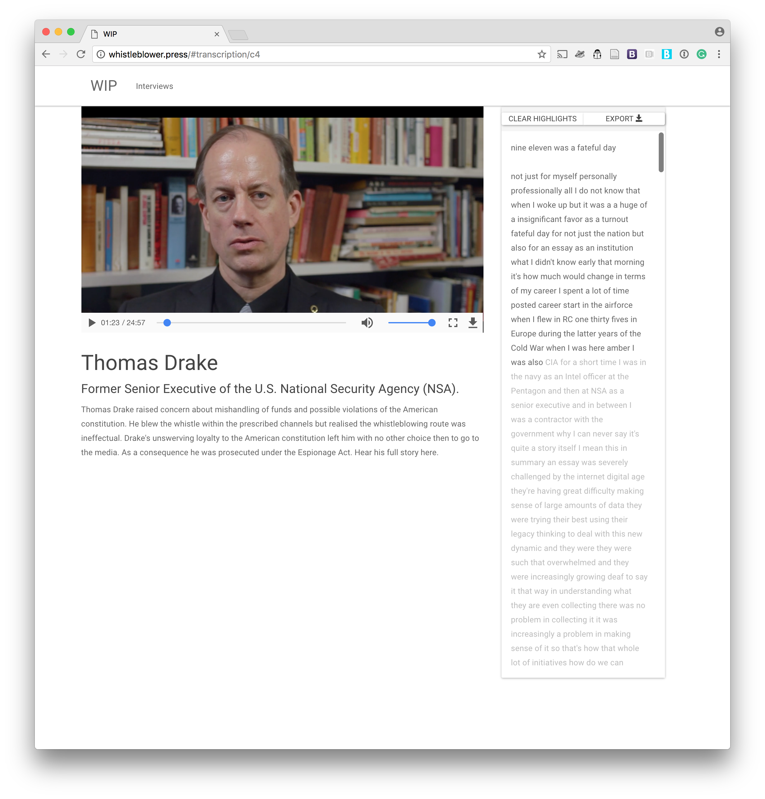 Using some of the videos from the Whistle Blowers Interview Archive, we’ll take an hands on approach to explore key concepts, ideas and techniques to identify narrative points, test out story ideas, and craft a compelling story.